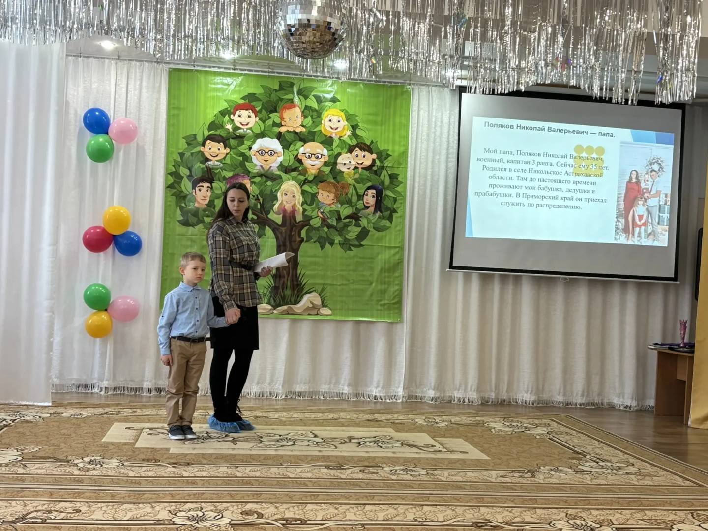 10 декабря прошёл городской конкурс исследовательских проектов «Моя родословная». Наш детский сад представляла дружная семья Андриенко. Они представили трогательный рассказ на тему «Герои моей семьи». Варя рассказала, что в их роду много военных, которые в разные годы защищали нашу Родину. Вместе с семьёй проект представлял и воспитатель Миллер А.В. Администрация и коллектив детского сада благодарит семью Андриенко за их огромный труд, смелость и достойное представление нашего учреждения на городском конкурсе.