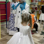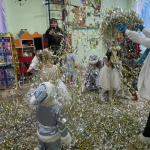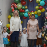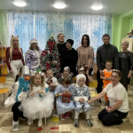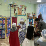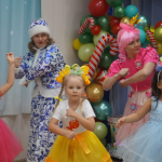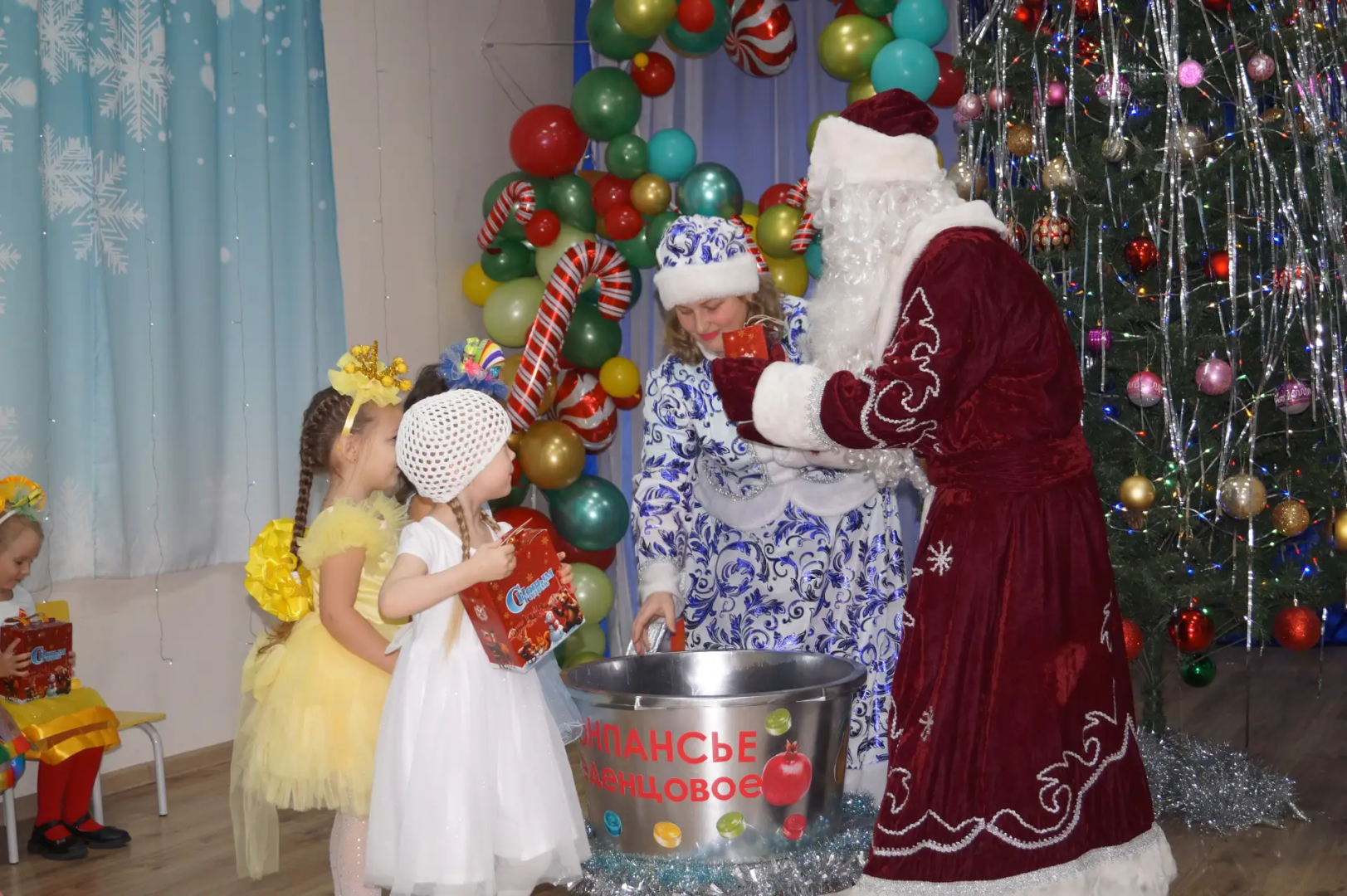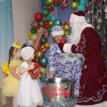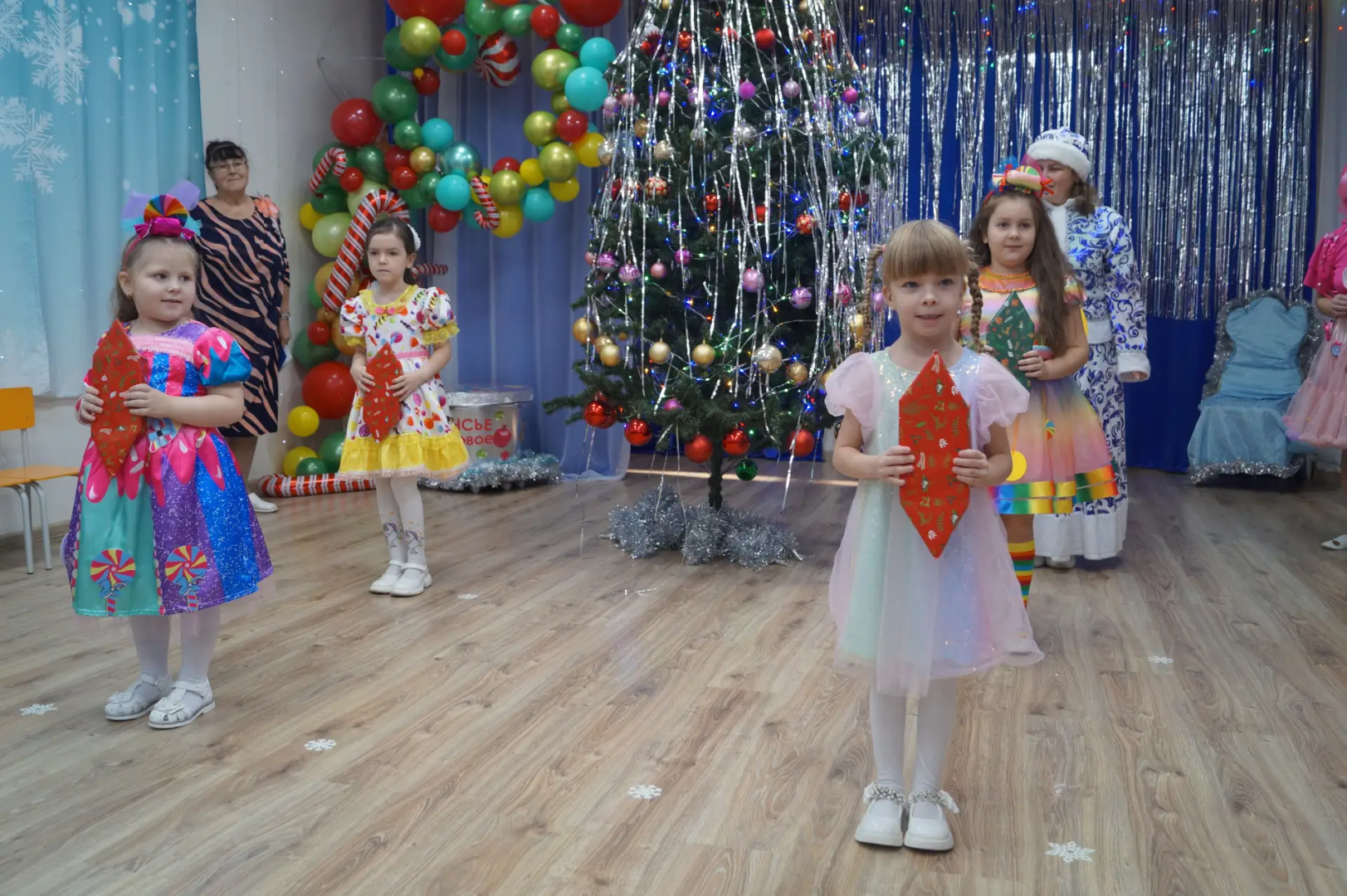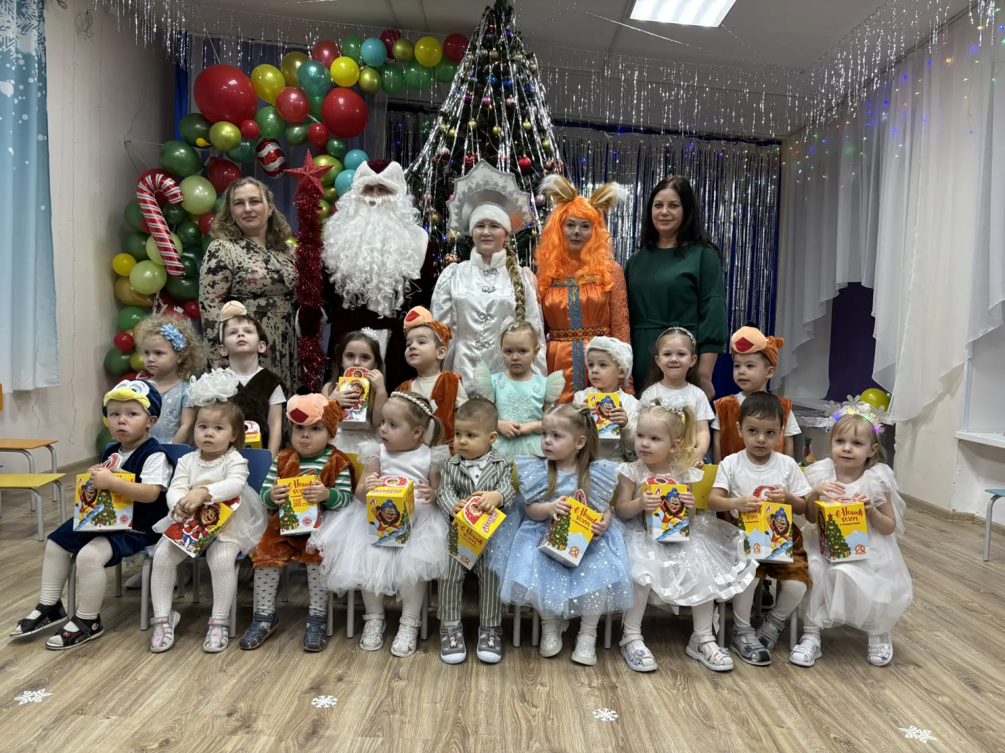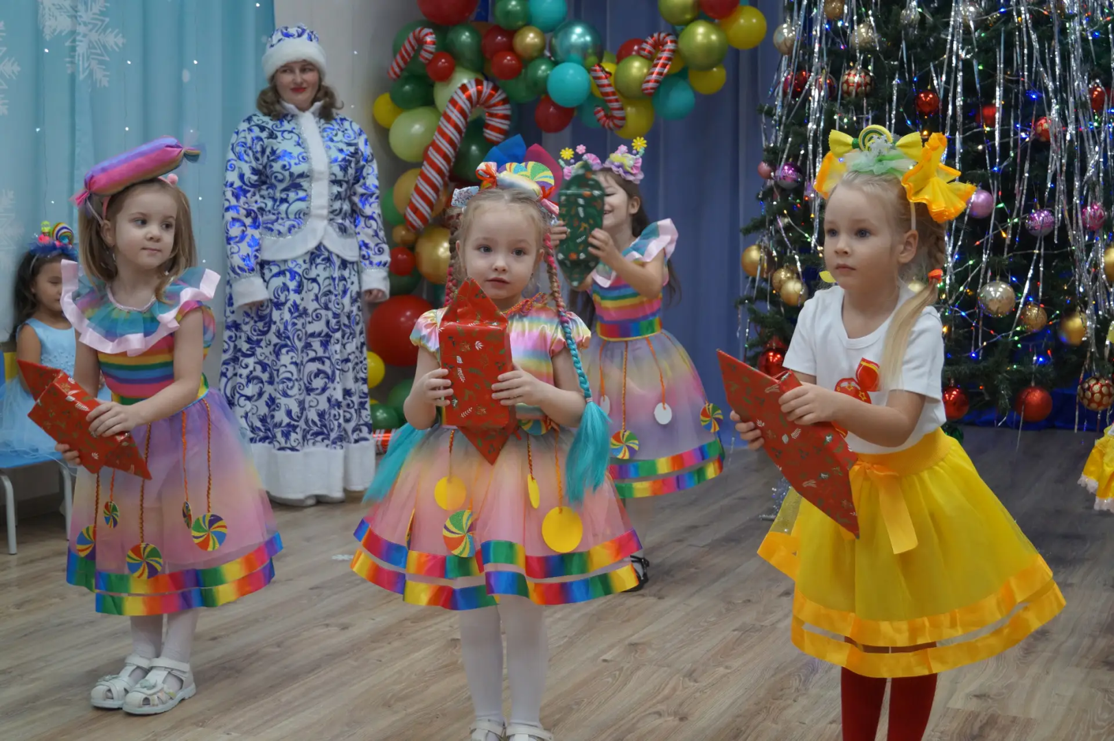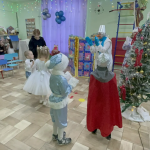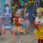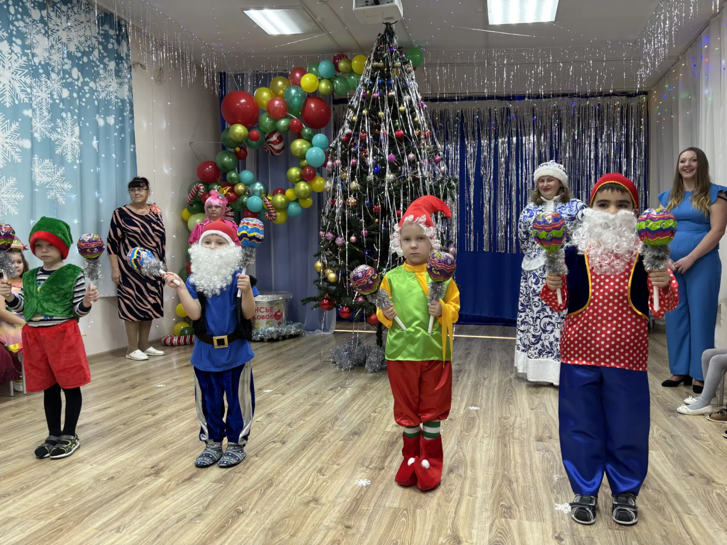 Вот и отгремели в детском саду новогодние утренники. Музыкальный руководитель Костюкевич В.И. написала сценарии на младший и средний возраст. На группу компенсирующего вида написала сценарий Ющук Н.А , а музыку подобрала Шестопалова С.В. В младшей группе прошёл праздник «Семейный карнавал», где главными участниками стали малыши и их мамы. Идея в том, чтобы создать пространство, где ребёнок чувствует себя защищённым и счастливым рядом с мамой. Снегурочку сыграла младший воспитатель Лобанова В.В., а Лису — воспитатель Раздобреева И.В. Для воспитанников старших групп состоялся утренник «В гостях у принцессы Карамельки». Дети совершили путешествие в карамельную страну. Снегурочку сыграла воспитатель Миллер А.В., а принцессу Карамельку воспитатель Ющук Н.А. На группе компенсирующего вида прошёл праздник вместе с родителями «Путешествие с лесными жителями». Снеговика сыграла воспитатель Ющук Н.А., белочку, зайчика и мишку озвучивали учитель-логопед Матвеева Т.А. и педагог-психолог Топильникова О.А. Всем воспитанникам детского сада от 3-х лет на утренниках были вручены губернаторские подарки.